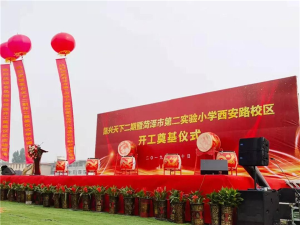 2019年7月10日上午 凯兴天下二期暨菏泽市第二实验小学西安路校区开工奠基仪式,在项目规划配建学校的现场隆重举行 仪式现场座…