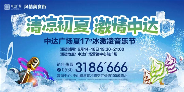 《中达广场冰淇淋音乐节》 6月14至16日晚 19:30-21:00 乐队表演、 酷炫街舞、热辣爵士舞 魔术表演、打碟灯光…