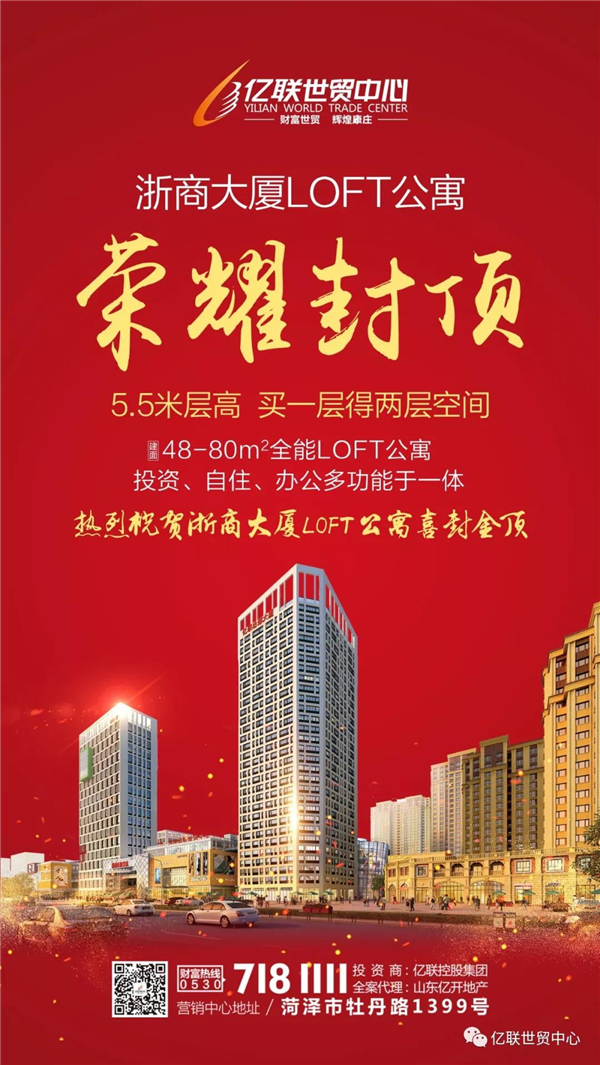 亿联世贸中心浙商大厦 建筑主体全面封顶 准现房完美呈现, 菏泽优质投资资产 再美的未来 也抵不过一个真实可见的…