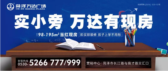 菏泽万达广场,紧邻菏泽市实验小学,目前现房热销中。热销房源:98㎡学区两房,106㎡经典三房,123-135㎡舒朗三居,152-195㎡奢阔四房,可实…