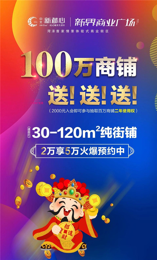 钱在手,跟万达走,万达中心铺 百万客流群;买铺就买万达铺,中心铺 、人气铺 、生财铺 、品牌铺;30-200㎡沿街现铺,首付57万起! …