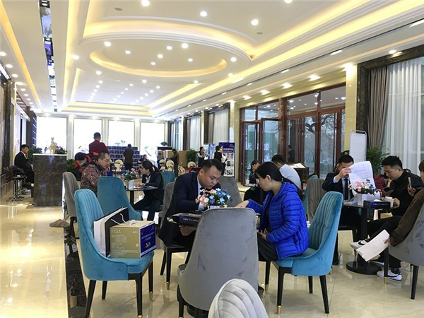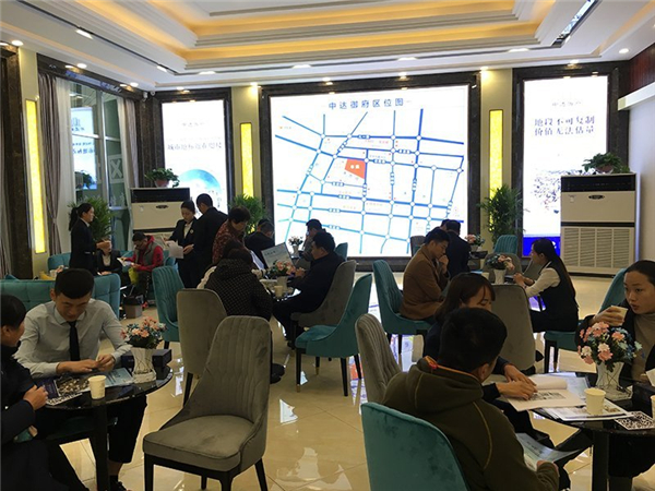 作为整个项目的缩影,中达·御府营销中心历经数月匠心设计与雕琢。项目营销中心大厅采用挑高设计,内场装饰实用与艺术相结合,由内而外彰显项目高端品质。宽敞明亮的待客区更是传达了项目对广大置业者的欢迎,洽谈区很快被熙熙攘攘咨询项目的人群占据,现场置业顾问热情地为大家答疑解惑,整个营销中心热闹非凡。