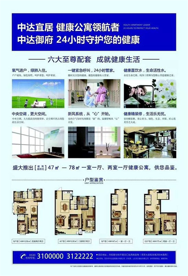 中达·御府项目共规划9栋住宅、3栋健康公寓,目前住宅户型面积约120—210平方米、健康公寓户型面积约47—78平方米房源正在接受咨询,部分房源接受预约。