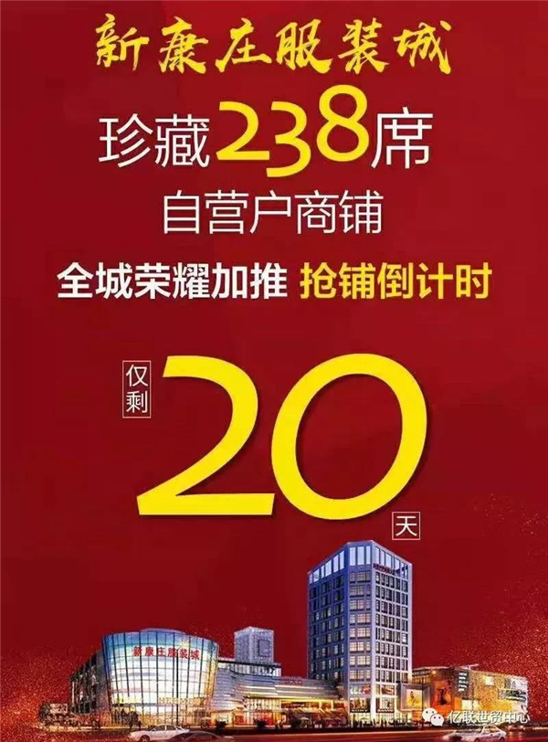 新康庄服装城仅剩238席自营户商铺全城荣耀加推,抢铺倒计时。