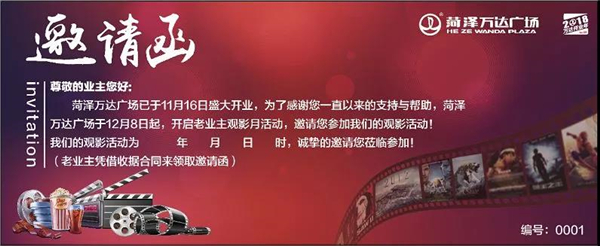 (1份邀请函可兑换2张电影票)