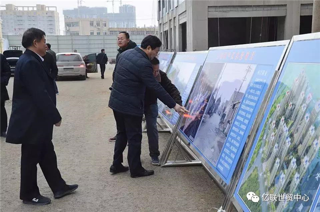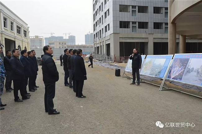 12月26日,牡丹区委书记张福龙、区长张泽中,率全区经济社会发展观摩团,莅临亿联世贸中心项目现场考察。亿联世贸中心总经理与工程相关人员陪同。