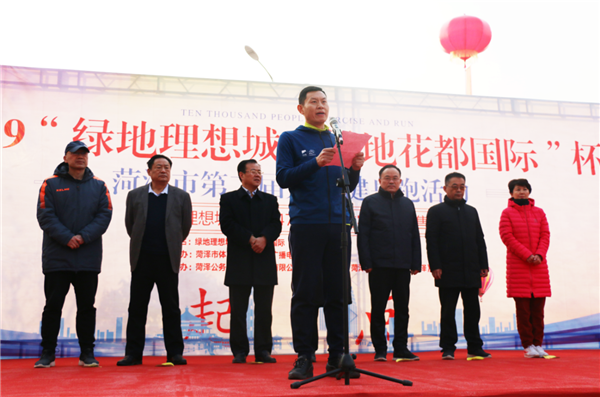 踏着新年的脚步,迎着初升的太阳,2019“绿地理想城·绿地花都国际”杯菏泽市第二届元旦健身跑在绿地理想城隆重举行,来自全市的14支代表队1500余名健走爱好者以健步跑7公里的形式庆祝元旦,跑进新年。菏泽市人民政府副秘书长孟凡荣,菏泽市开发区党工委副书记、管委会常务副主任练建军、菏泽市体育局党组书记、局长史长华,菏泽市广播电视台总编辑徐明军,菏泽市金土地开发投资有限公司董事长饶生存,菏泽市体育局副局长房惠敏,菏泽市广播电视台台长助理祝国华,菏泽绿地理想城董事长、绿地花都国际总经理顾仁强出席本次活动。