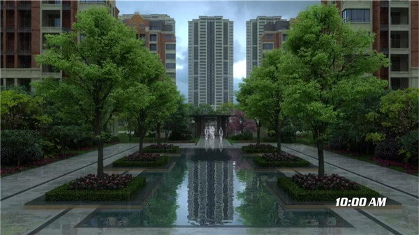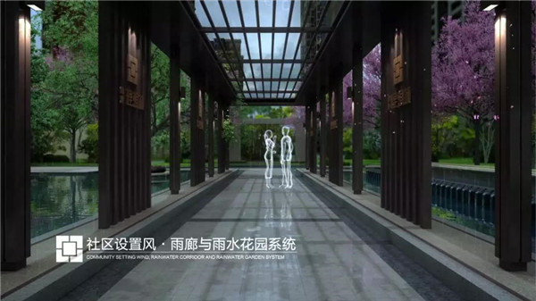 小区内运用尖端科技打造雨水花园系统,实现对自然降水的开发与利用,有效调节空气湿度与温度,释放氧气,改善小区空气质量。