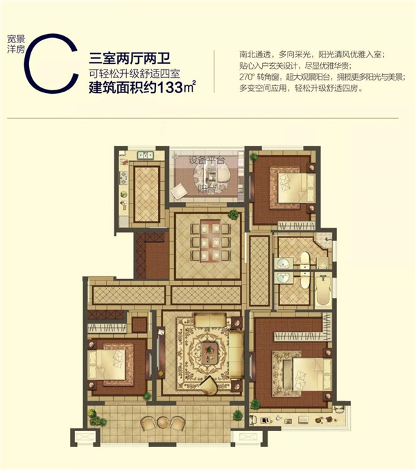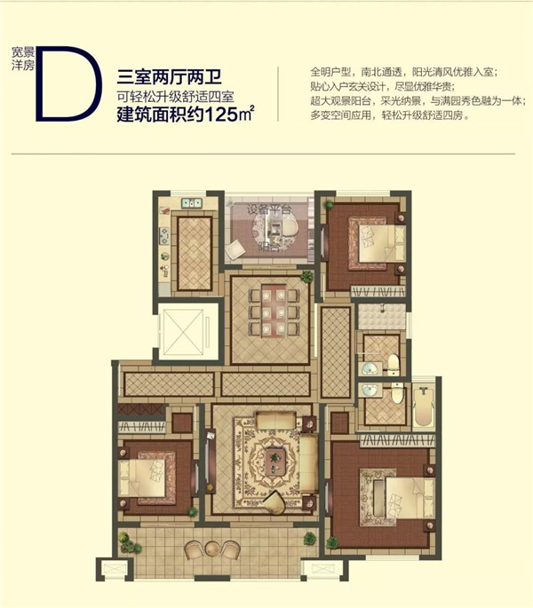 露台生活是属于我们的第三层氧吧,是家居生活最新鲜的空间,亲近自然,拥抱阳光。闲暇之余和亲朋好友,在一起喝茶聊天,看夕阳西下,好不舒适惬意,即便是秋意连绵,冬雪悄然而至的季节里与三五好友来杯酒相聊甚欢,把最寻常普通的周末变成一场仪式感的片段。