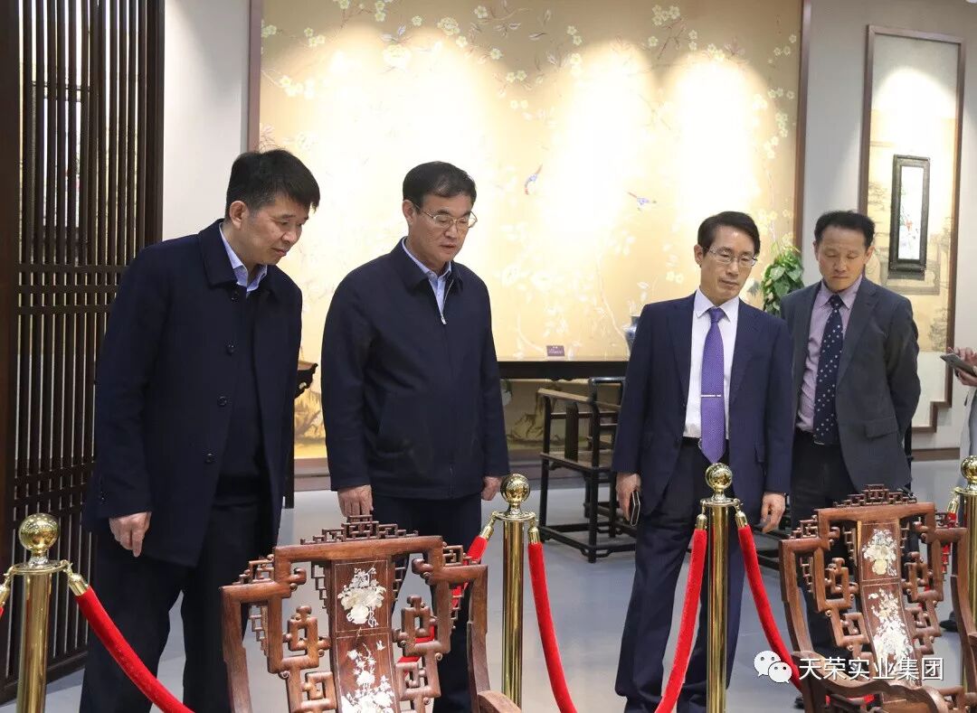4月12日下午,韩国驻青岛总领馆总领事朴镇雄一行莅临天荣智能家居小镇参观,天华集团领导刘冰、张鑫陪同。