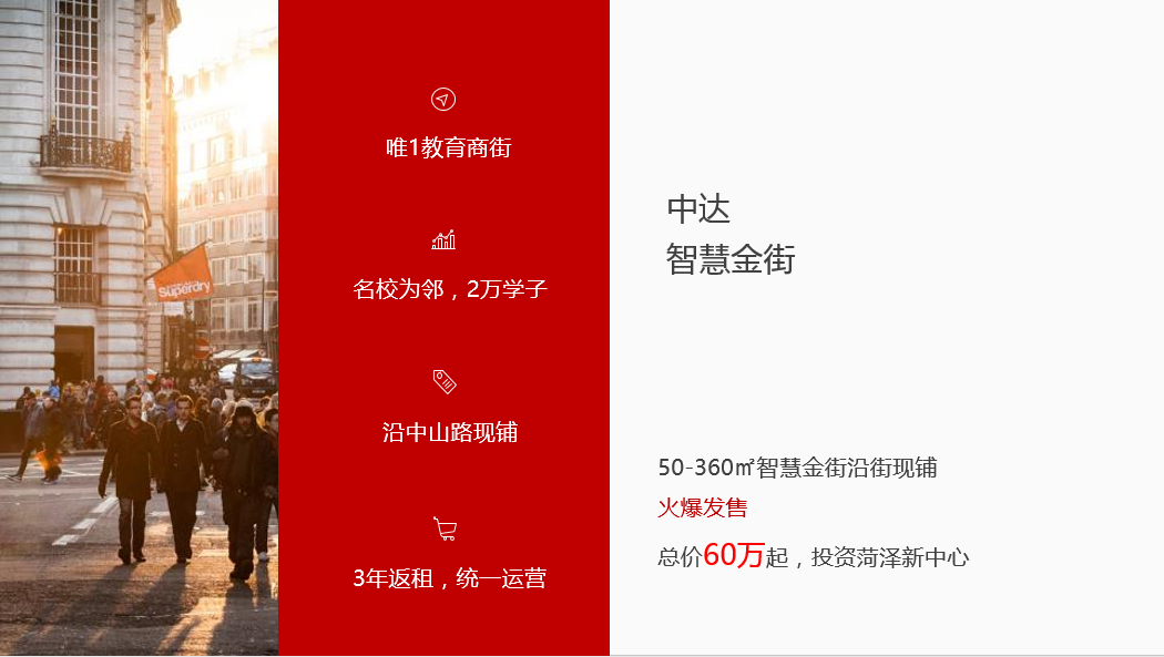 智慧金街已完全招商,各品牌教育机构入驻,购买即可享受3年返租18%钜惠,即买即收租。