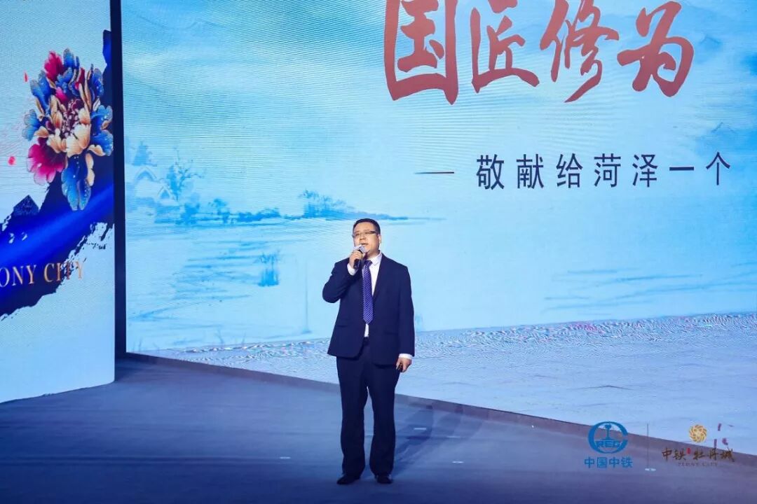 中国中铁置业集团有限公司党委副书记、总经理朱洁先生在欣赏完《梦想起飞》大型舞台秀后致辞,将中铁与菏泽的故事娓娓道来。