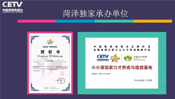 中国教育电视台《小小演说家》栏目菏泽市唯一输出平台。