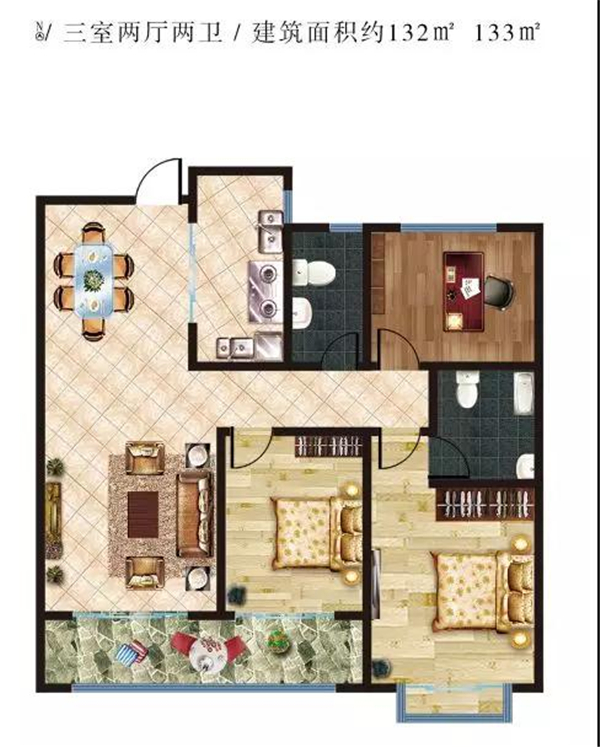 ⊙四室两厅两卫,户型方正,全明灵动空间设计,南北通透,布局合理