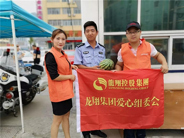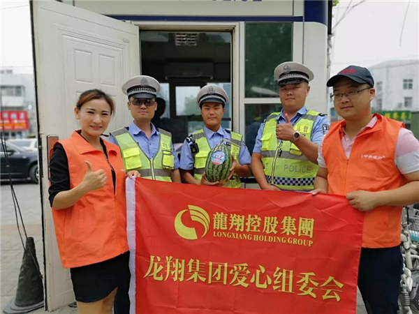 7月25日,近40°的高温,处处热浪肆虐。当人人躲在空调屋里不愿外出之时,中央檀府的工作人员们驱车前往菏泽各大路口,将新鲜西瓜送给奋战在一线的交通警察,感谢他们冒着酷热依然坚持认真指挥疏导交通,全力为广大人民群众出行安全、道路畅通保驾护航,同时也送上一份清凉和关爱!