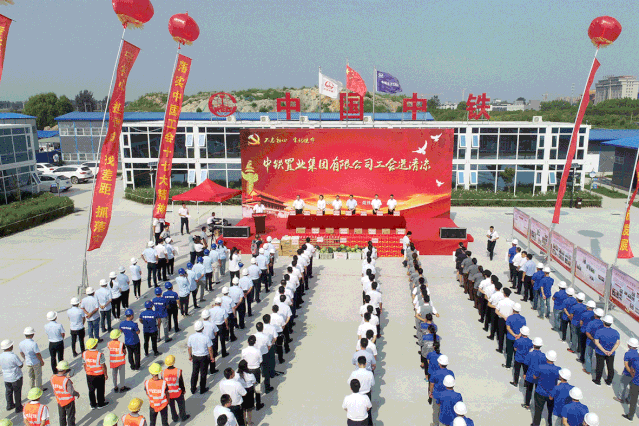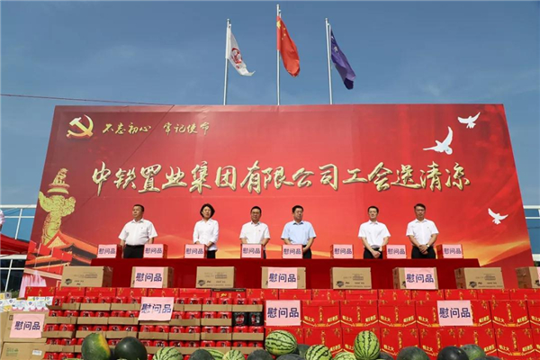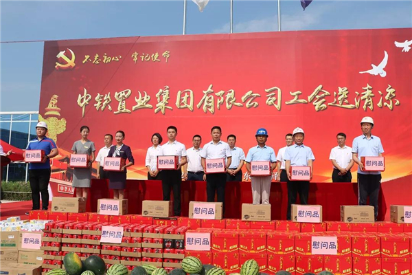 2019年8月20日,中铁置业集团有限公司工会来到菏泽中铁·牡丹城项目为一线员工“送清凉”,活动现场旌旗高展、氛围热烈,170余人列着整齐的方阵齐聚在菏泽中铁·牡丹城施工现场。中铁置业集团公司副总经理、工会主席张春胜,工会副主席程远,集团公司副总经济师、济南公司党委书记、董事长刘序勇,济南公司总经理、党委副书记张炳林出席本次活动。