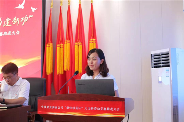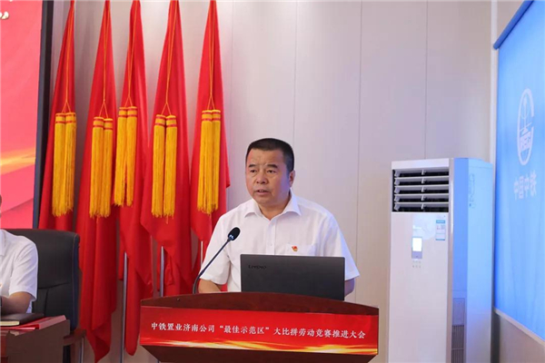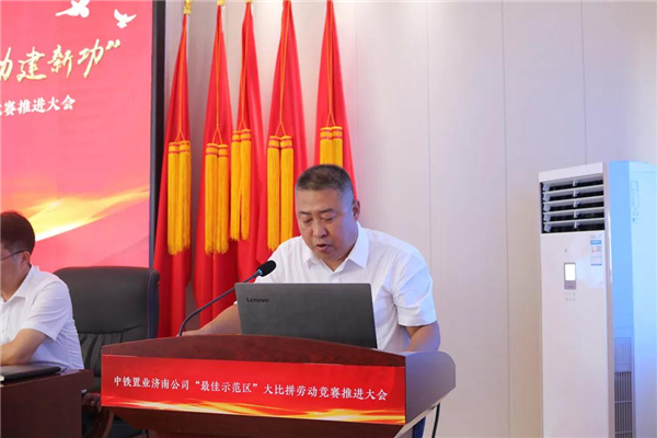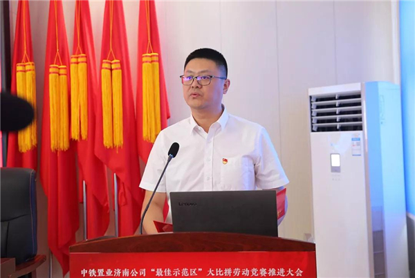 “送清凉”活动结束后,与会人员接着参加了“创岗建区党旗红 凝心聚力建新功”中铁置业济南公司“最佳示范区”大比拼劳动竞赛推进大会。会议由济南公司总经理、党委副书记张炳林主持。