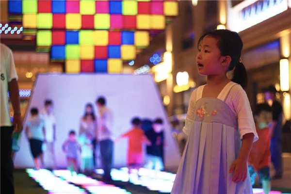 彩虹跑更是人气爆棚男女老少跟随节拍在键盘上尽情跳动 为期23天的抖音网红艺术节将给市民呈现不一样的夜晚流光溢彩的灯组成绚烂的灯海 带着家人一起来万达金街感受不一样的梦幻之夜