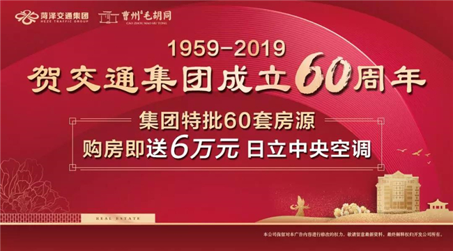 风雨同舟六十载,交通集团感恩菏泽,以实际行动回馈新老朋友,购买曹州毛胡同集团特批房源,赠送价值6万元日立中央空调,数量有限,务必臻藏。
