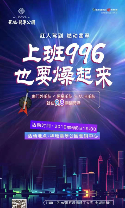 以音乐之名的欢聚,从来都是温暖而走心的。据悉,9月8日晚19:00,华地·翡翠公园网红音乐节澎湃将起!在这趟即将启程的音乐之旅中,华地·翡翠公园将用青春活力的音符,传达对这座城市最真切热爱。在公园的夜色下,三大网红乐队同台献唱,一场前所未鉴的网红音乐盛会,静候菏泽!活动现场精彩纷呈,欢迎广大市民前来聆赏!