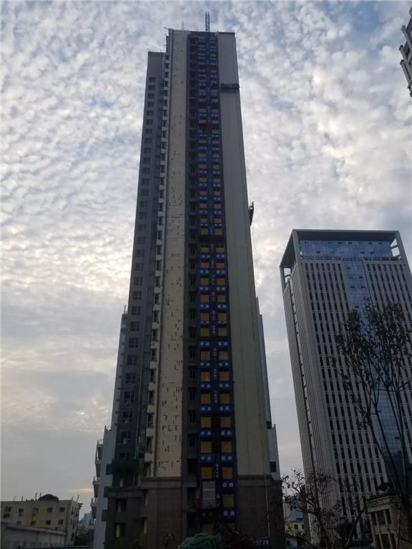1#楼外墙保温涂料除施工电梯口处已基本完成,施工电梯已拆除