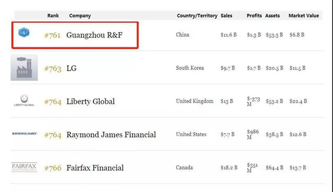 在今年5月美国《福布斯》杂志出炉的2019年福布斯全球上市公司2000强榜单中,富力也凭借2018年的业绩表现位列全球第761名,在上榜中国房地产企业中位列第8名。