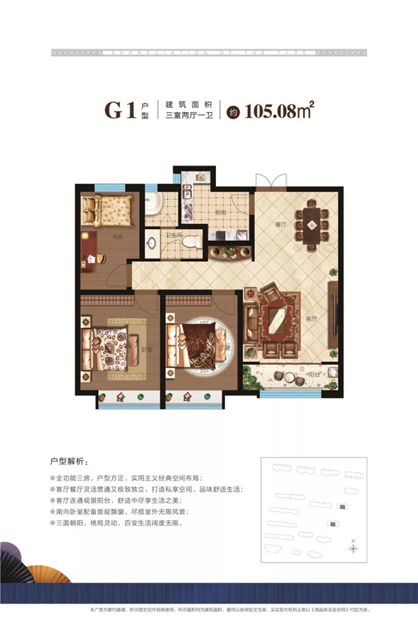户型格局方正,舒适通透。南北通透,让全家人尽享阳光生活;超宽横厅,宽阔阳台,给全家人极致的观景视角;舒适主卧,匹配主人尊荣身份;明厨明卫,无微不至的细节打造品质生活。