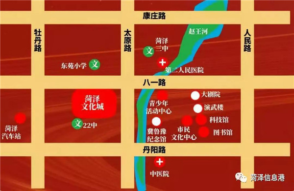 众所周知,交通是城市化发展的命脉和纽带,道路的方向就是财富的方向。菏泽文化城商铺,地处菏泽市交通要道,坐拥八一路和太原路,四通八达,地标大剧院等八大馆附近,与扩建中的二十二中相邻。菏泽文化城商铺占据了天时地利,交通十分便捷,路路相通,直通东西南北。