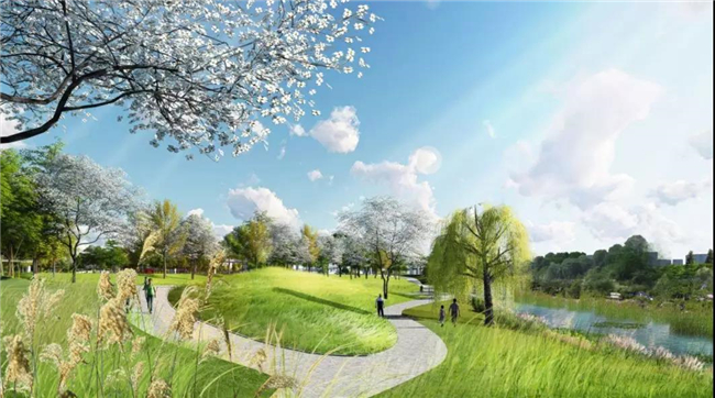 更高绿化率,在环城大堤畔被鲜氧围绕