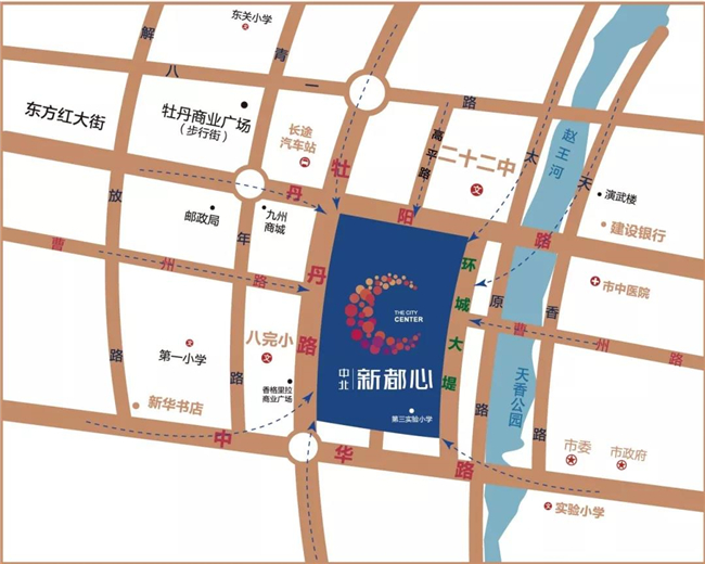 中北•新都心,地处菏泽四大商圈交汇核心,六大主干道围合,规划总面积约850余亩,总建筑面积约180万平方米,总投资100亿元;配套建设牡丹区第三实验小学、精品幼儿园,毗邻八完小、22中优质学区;外拥15万方环城大堤生态景观公园,坐拥四大商圈核心,汇聚100万消费人群。