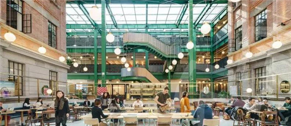 传统办公室一人一桌,其余的地方则显得与自身没太大联系,顶多就是有片公共就餐的区域。