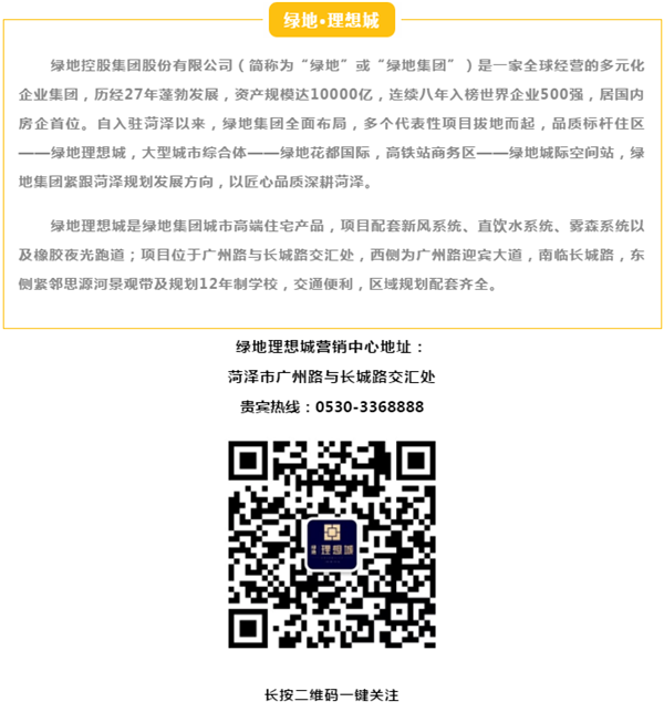 1、预售证号:菏房预售[2019]784号-02,菏房预售[2019]784号-01,菏房预售[2019]816号,菏房预售[2019]732号-04,菏房预售[2019]733号-02,菏房预售[2019]733号-03;2、标准地名:绿地理想城;3、项目注册名:绿地理想城,商品房楼号、房号由政府有关部门初步确定,项目最终名称及商品房楼号、房号以政府相关文件确认为准;4、本资料相关内容、图片是对项目所做的示意表现,仅供参考,楼盘规划、配套等情况,最终以政府有关部门批准的文件、图则为准;经政府批准的详细规划已在楼盘销售现场公示,敬请查看;后续因规划设计方案调整导致信息变化的内容,我司将按照政府要求进行公示;5、本资料为要约邀请,买卖双方的权利及义务以双方签订的《商品房买卖合同》为准;6、绿地集团位列2019《财富》世界500强第202位,连续第八年成功入围,较去年大幅跃升50位;7、本广告对项目的周围道路规划、环境、交通、公共设施、各种产品及文字介绍,旨在提供相关信息,不意味着本公司对此作出了任何承诺;8、本项目的教育配套以政府规划为准,可能会存在教育资源差额分配的情况,业主是否符合入读条件,具体以政府文件为准。教育机构的开业招生时间可能受政府或政府指定的经营方要求所限,此情况下以政府或政府指定的经营方要求为准;9、楼盘优惠详情请咨询项目售楼处,具体价格以实际成交价格为准;10、本广告相关面积段均为预估建筑面积,具体面积以签署《商品房买卖合同》为准;11、本广告2019年11月20日启用,相关内容如有更新,请以最新资料内容为准。