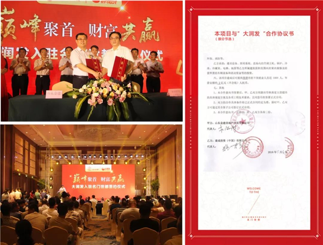 2017年7月5日,山东金建房地产开发有限公司与康成投资(中国)有限公司(大润发)正式签约;康成投资(中国)有限公司持有“大润发”商标的合法权利,是“大润发”中国地区总部。中国大陆地区的“大润发”门店均为康成投资(中国)有限公司所投资设立。大润发自1998年在上海开设第一家大型超市以来,截至2019年10月,已在中国大陆地区成功开设412家综合性大型超市,年销售额排名国内前2、品牌力排名国内前3.门店遍布华东、华北、东北、华中、华南五大区域,服务覆盖全国29个省市及自治区,拥有十多万名员工和十万多名导购,每天为四百多万位顾客提供服务。