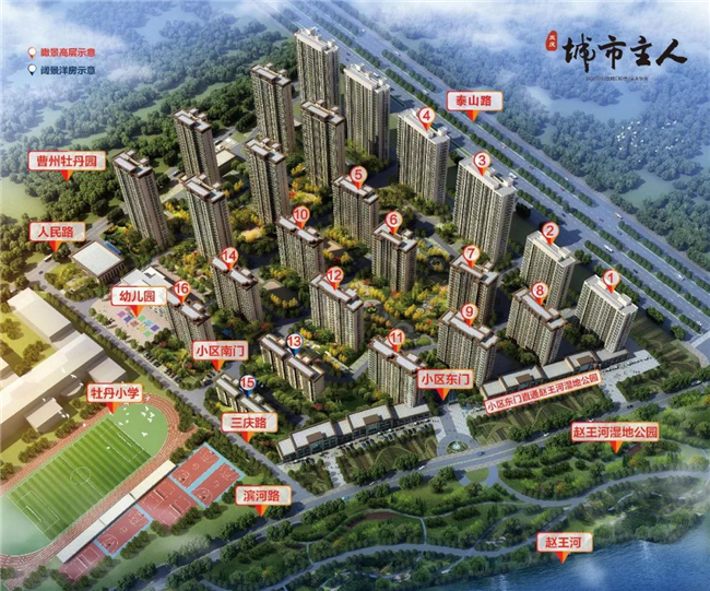 菏泽“三庆·城市主人”项目是由三庆集团匠心打造的新城市运动代表作品,一个由高层住宅和多层电梯洋房组成的低密度高品质社区。东侧紧邻风光秀丽的7.2公里赵王河畔和政府投资18.2亿,占地604公顷的赵王河湿地公园,入住后在小区推窗即可赏四季美景,回家便是一场穿越公园的旅行。