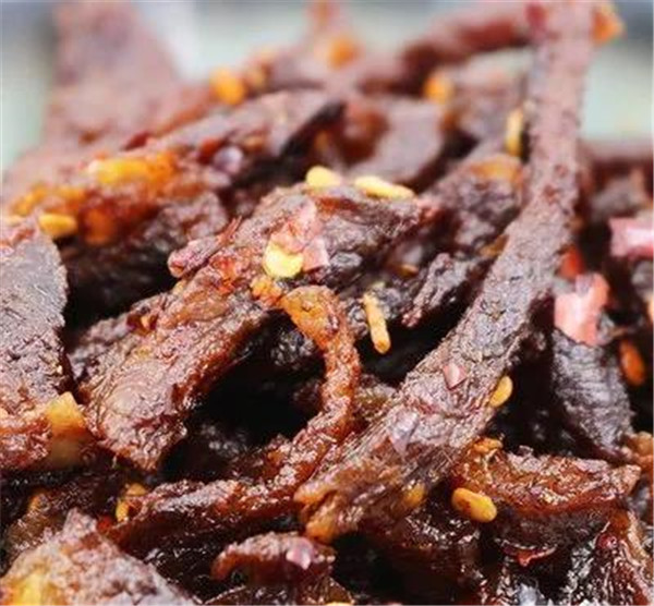 选1-2年龄的鲁西南黄公牛作原料,加各种调料和小盐加以腌透,细火烧熟后凉干,再用小磨香油烹、炸,肉质鲜嫩、香味浓郁
