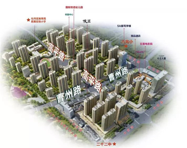 中北·新都心配套建设两所精品国际幼儿园,同步搭载儿童兴趣课堂、国学大讲堂、“4点半”学校等诸多成长教育资源;社区内牡丹区第三实验小学已投入使用;