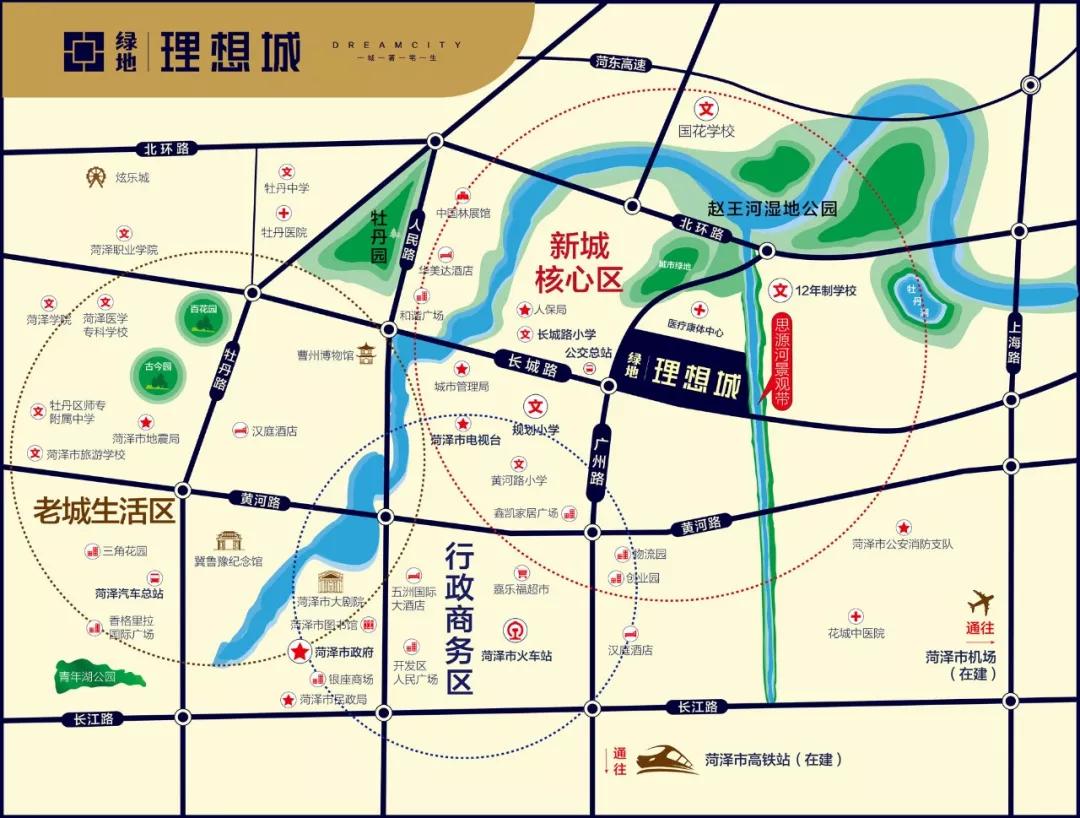 丨示意图绿地集团始终站在”突破菏泽,鲁西崛起“的城市战略下,深耕菏泽。从各个角度定义当今健康生活。探究中国人深厚的河流文化,将花都国际与理想城均选址于菏泽生态围合之中,形成天然的宜居之地。深层考究选址环境,因地制宜的补足项目生活缺失,为花都国际营造12年菁英教育,为理想城匠筑3万方缤纷业态,参考国际健康建筑标准,打造切合居住健康与舒适的美好生活,开启菏泽健康生活的新时代。