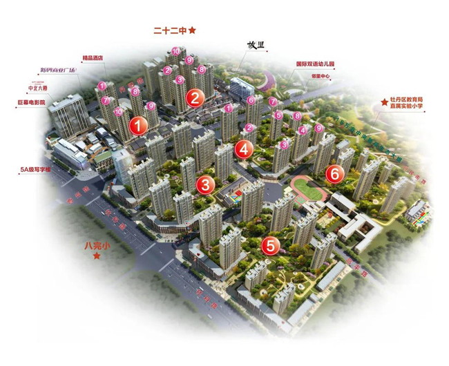 中北·新都心配套建设两所精品国际幼儿园,同步搭载儿童兴趣课堂、国学大讲堂、“4点半”学校等诸多成长教育资源;社区内牡丹区第三实验小学已投入使用