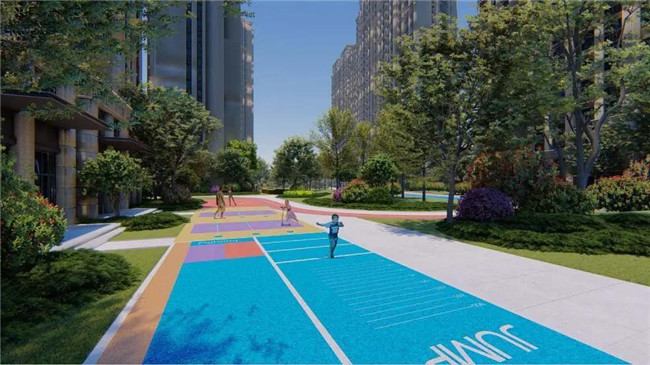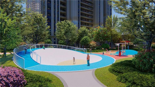 4号地天玺组团规划活动广场、塑胶跑道、塑胶地垫、绿地背景音乐和老年休闲区、大龄儿童游乐区、低龄儿童有乐趣等一系列全龄段运动配套,人车分流,人文化关怀备至。