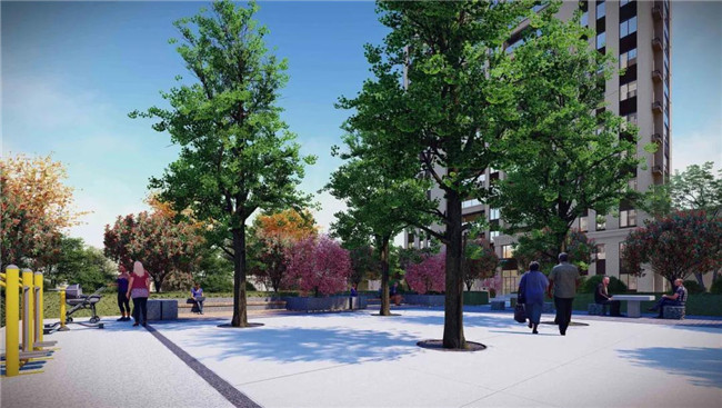 社区引进几十类罕见树种,包含驱蚊香樟树,居民独享四季繁花雅境。