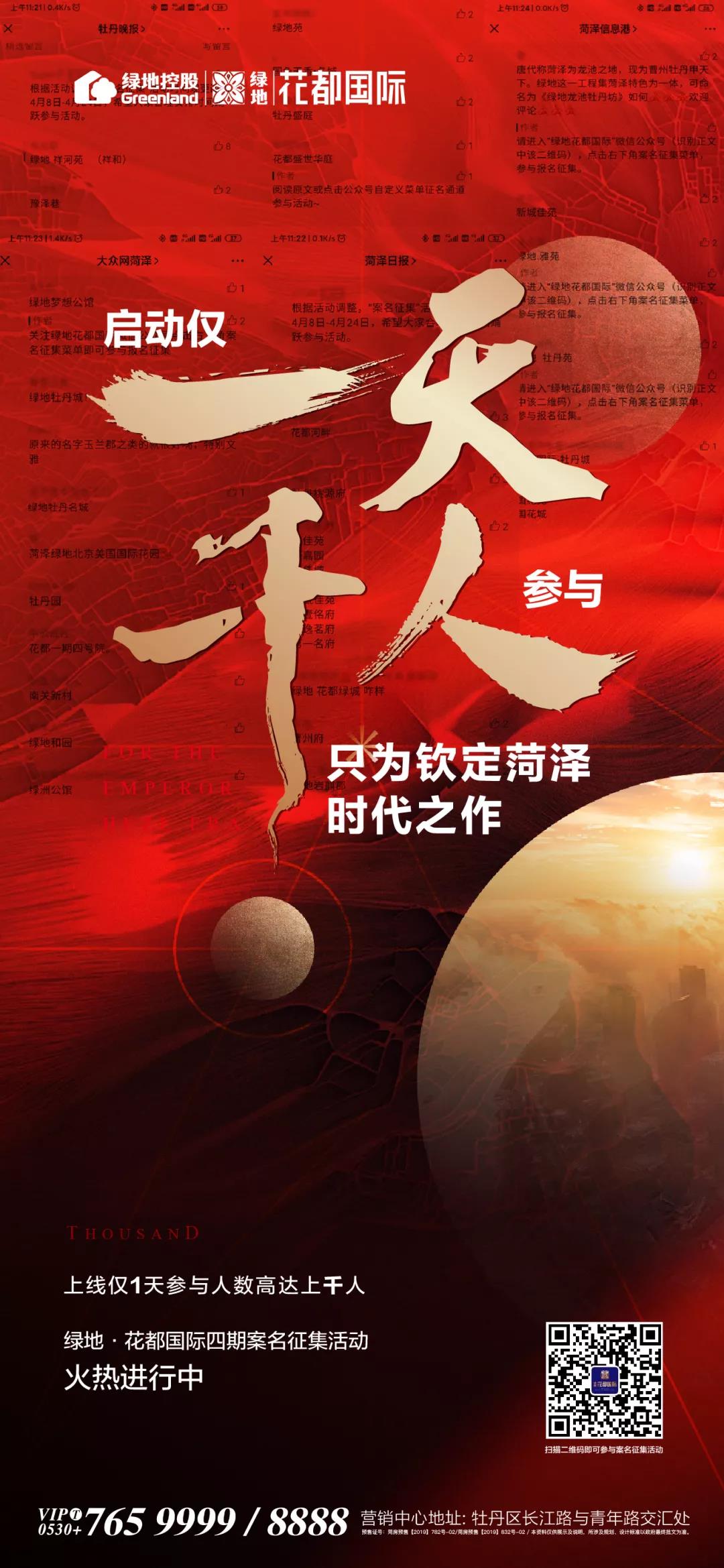 (菏泽信息港讯)“绿地花都国际项目四期案名征集”活动一启幕,就受到了广大市民的高度关注与热情反响。4月9日上午,活动启动仅一天,就有近千名热心民众踊跃参与投稿,截至目前,我们已经收到了千余个宝贵的案名建议,参与市民积极分享给身边的亲朋好友,大家集思广益,脑洞大开,开启了一场全民参与的案名构思热潮。