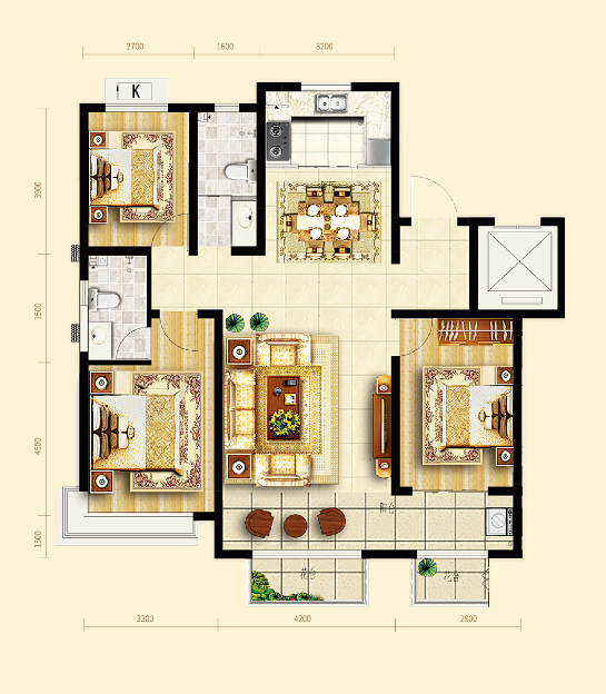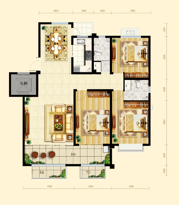 南北双次卧,可分别安排为儿童房、老人房或客房