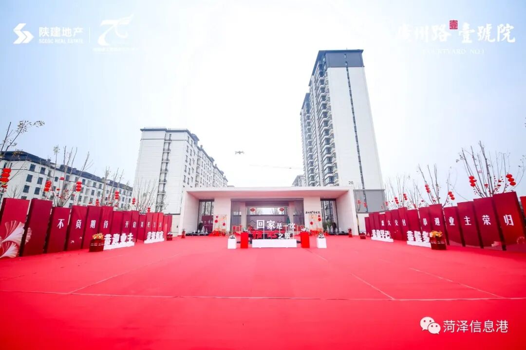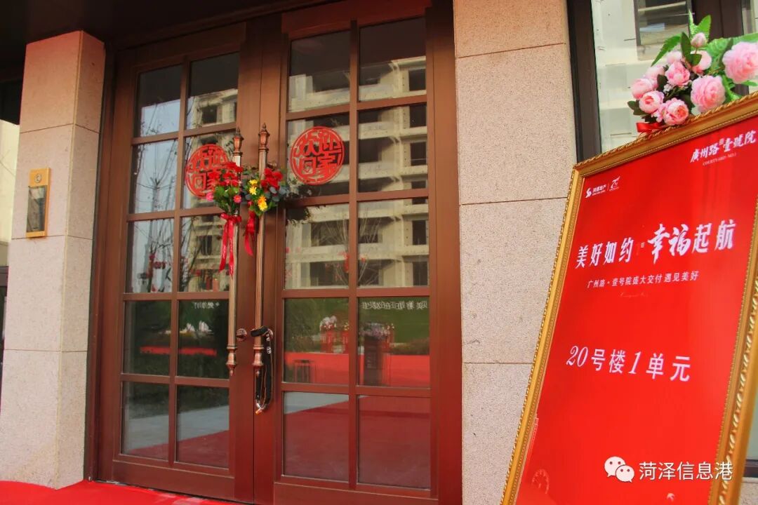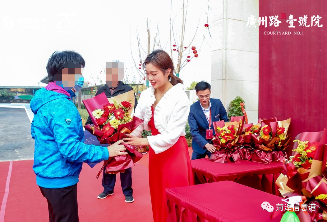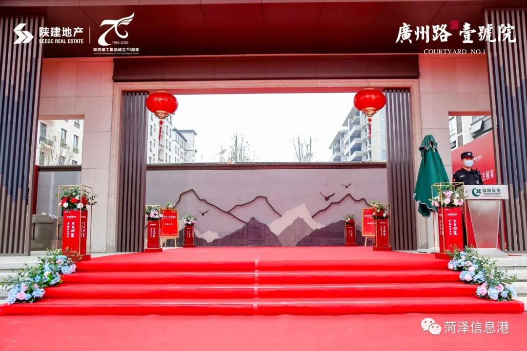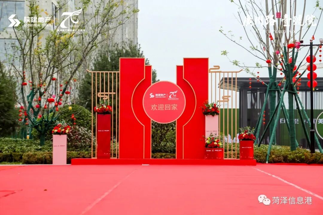 每栋楼的单元外,都整齐摆放着花柱,与红地毯遥相呼应。单元入户门,干净的玻璃上贴上了“欢迎回家”的卡片,美好如约,幸福起航。门把手处用红色鲜花装饰,让回家的路,更温馨。