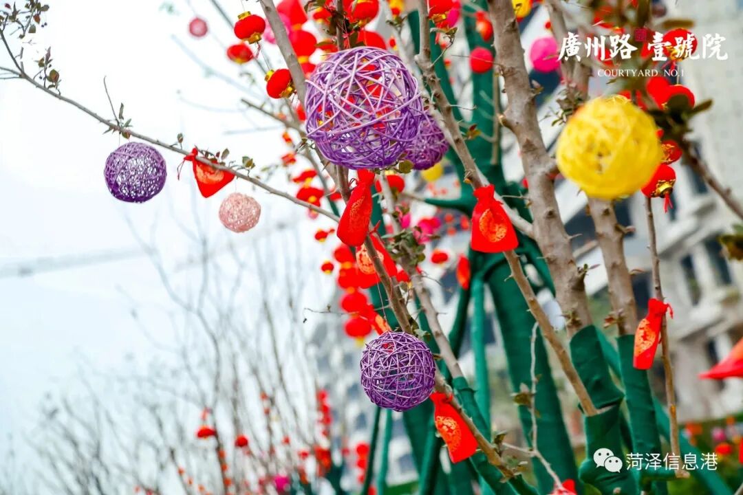 不放过任何细节,不放过任何角落。在广州路壹号院小区内,树梢上挂满了各类红色装饰,灯孔、福袋、卡片,一派祥和喜悦之景,更像是引导业主回到自己的新家。