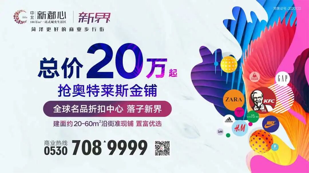 「新界」商业步行街,奥特莱斯、肯德基均已入驻,与大牌同行的沿街准现铺,总价仅20万起!可谓一本万利的好生意!趁着活动优惠,买间好铺,把钱花在可以让你钱生钱的地方,让余生的每一个双11都不再“吃土”,用钱买到更实用的快乐!