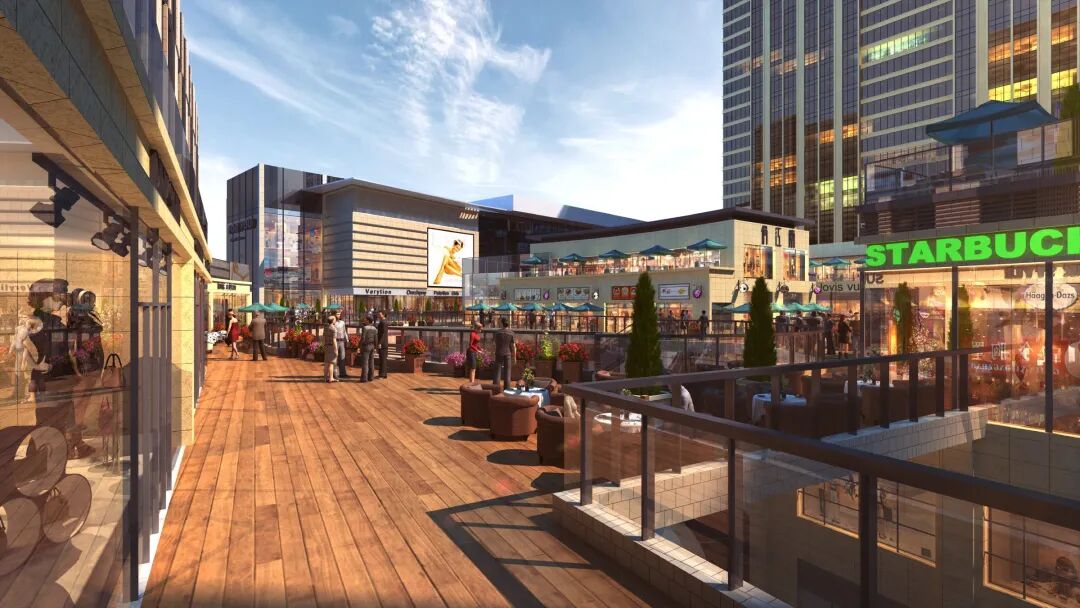 沿街铺的优势最重要的就是交通通达性,交通便利不仅增大了消费者的消费可能,也降低了商户的物流成本,也影响着商铺的展示面。而「新界」商业步行街在牡丹路、曹州路、高平路、丹阳路四条城市主干道围合之下,已然形成了枢纽中心的“中芯商业”。