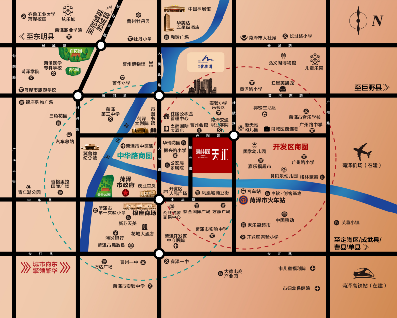 直线距离菏泽市中医医院约2km
