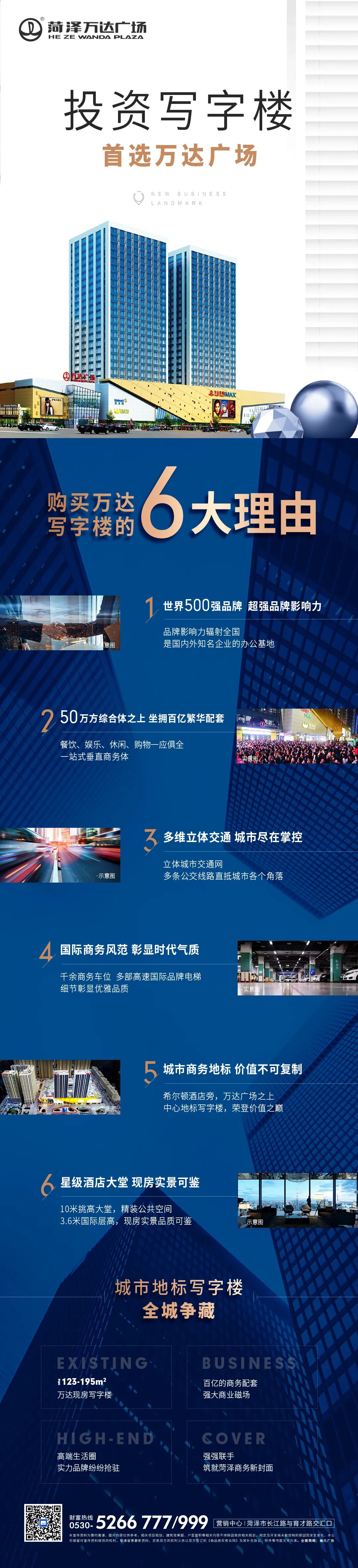 万达集团世界五百强企业,32年300余城,鼎力开发顶级商务集成圈,被誉为“中国城市高端CBD专家”。自万达广场进入菏泽,万达整合升级,从读懂城市,到融入城市,再到引领城市。万达给各位企业主带来的不只是写字楼,还是高端圈层的商务平台。