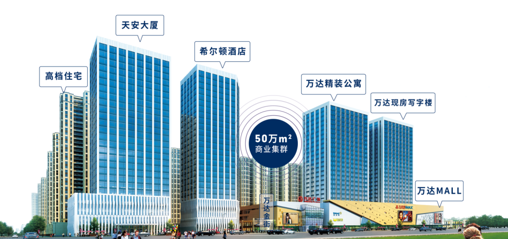 万达地标写字楼,以中国高端商务领航者万达企业背书,给入驻企业提供了一个全新的展示窗口。