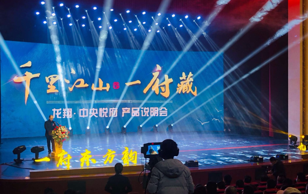 下午2点,各界媒体人士、业内大咖、意向客户等共计千余人陆续到场签到,现场高朋满座,热闹非凡。倾城仰止,府门盛启,同比例放大还原北宋著名画家王希孟的传世名画《千里江山图》,打造出独具中式的仪式感。